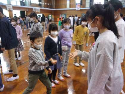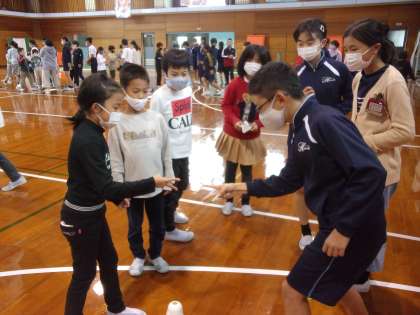 集会委員会さんが企画した、きずなを深めよう集会が行われました。今日は3年生と6年生がじゃんけんゲームで交流しました。