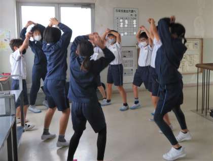 5年1組では、体育の学習で「チーム・ダンス」に取り組んでいます。各チーム、自分たちで選んだ曲に合わせてダンスを考えています。少しずつ動きができて、楽しくなってきたようです。12月の学年発表会が今から楽しみですね。