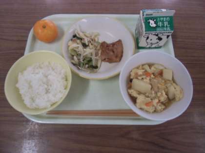 11月24日は、和食の日です。和食の基本は、「だし」です。だしは、食材のうまみをとりだした汁のことで、和食の味の基本になっています。日本のだしは、おもに昆布やかつおぶし、にぼし、ほししいたけなどの乾燥した食品でとります。だしを使うと、塩分を減らすことができます。今日の卵とじは、かつおぶしでだしをとっています。