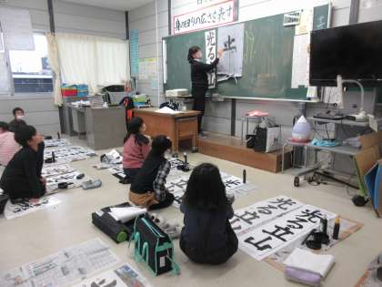 12月に入り、書初めの練習が始まりました。4年生が書くのは「光る立山」です。1年ぶりの練習でしたが、昨年のことを思い出し、太くて力強い字を書いていました。1か月後の練習の成果が楽しみです。