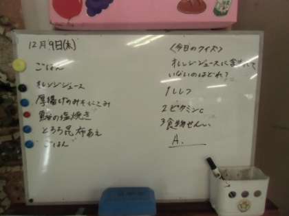 今日の給食 公開日 2021/12/09 更新日 2021/12/09 給食室 だいこんには、アミラーゼという栄養をたくさん含みます。アミラーゼは、消化をたすける働きがあります。今日は、煮物に入っています。