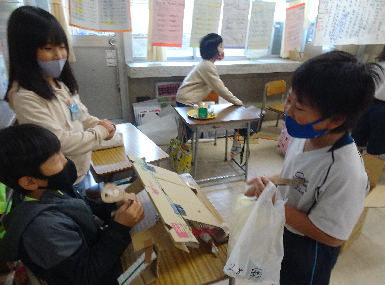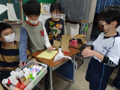 振り返りの時間では、1年生から「2年生が努力しておもちゃをつくっていた」という感想が伝えられました。他学年との交流を通して、これまでの自分たちの活動がどうであったかを深く考える、学習の契機となりました。