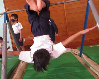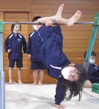 体育科「てつぼうあそび」(1年生) 公開日 2021/12/17 更新日 2021/12/17 1年生 1年2組の「てつぼうあそび」では、それぞれの子どもたちの遊び方にこだわりが生まれ始めています。仲間のつくったオリジナルの動きをヒントに、もっとレベルアップした自分なりの動きをつくろうと試行錯誤しながら取り組む子ども、1番好きな動きの回数やきれいさを高めようと夢中になって挑戦する子ども等、それぞれが自分にとって楽しい鉄棒遊びとは何なのかを考えながら、活動を続けています。