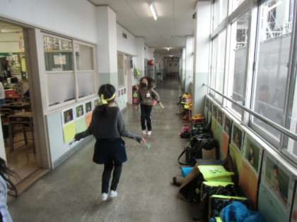 自主活動の時間に縄跳びを頑張る子どもたちがいました。仲間と一緒に二重跳びの練習をしていました。また、馬跳びをしたりクロムブックを使ったりしながら一人ひとりが、自分の力をさらに高めていこうとしています。