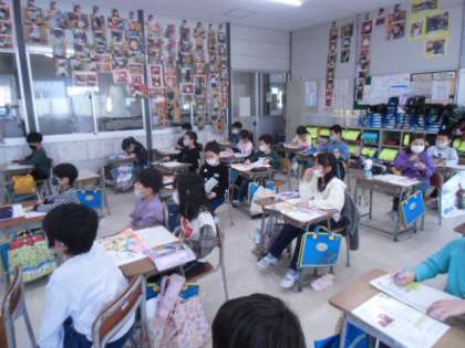音楽鑑賞(1年生) 公開日 2022/01/26 更新日 2022/01/26 職員室 音楽の時間に「ラデツキー行進曲」の鑑賞をしました。体を揺らしたり手拍子をしたり全身を使いながら鑑賞を楽しんでいました。曲を聴きながら「探検隊を思い浮かべました。元気よく歌っているようでいいなと思いました」「いろんな虫たちが花の周りでダンスをしているみたいでした」「旅人が野原を歩いているように聞こえました」など一人ひとり想像を膨らませながら聴くことができました。