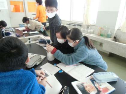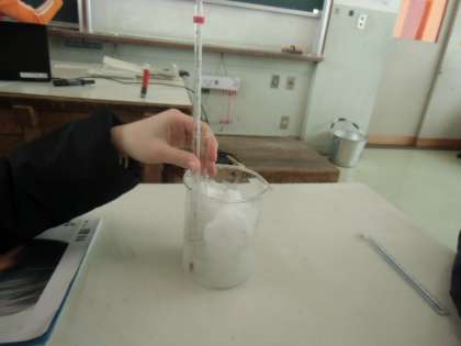 水が冷えて氷になるときの水の温度や様子はどのように変わるのか実験をしました。試験管に入った水の温度が下がり、試験管がくもったり水から氷になったりする様子を見ることができました。