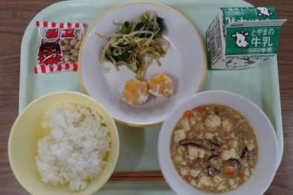 今日の給食 公開日 2022/02/01 更新日 2022/02/01 給食室 今日から、2月です。2月は、暦のうえでは、春をつげる月です。日の長さも一日ずつ長くなってきますが、2月は、一年でもっとも気温が低い月です。疲れがたまったら、早めに休むようにしましょう。今日は、節分の豆、大豆が付いています。大豆は、日本人にとって、お米と同じように大切な作物で、特別な力があると考えられていました。