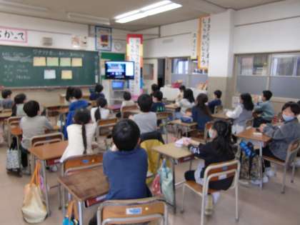 読み聞かせ会 (2年生) 公開日 2022/02/04 更新日 2022/02/04 2年生 大型絵本「よくばりすぎたねこ」の読み聞かせを聞きました。何かに取り組む際は、よく考えてから行わなくてはいけないが、考えすぎるともったいないこと、損することになると、愉快に学ぶことができました。読み聞かせの後は、今回クロムブックを用いて振り返りをしました。