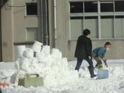 雪遊びをしました。かまくらを作ったり滑り台を作ったりしながら楽しい時間を過ごしました。
