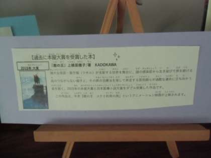 図書室のおすすめの本のコーナーには、「過去に本屋大賞を受賞した本」があります。何を読もうか迷ったときぜひ手にとってみてくださいね。