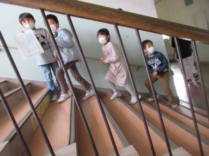 算数科「大きい数」の学習したことを生かして、ファミリーで学校の数探しをしました。「0は、あるのかな?」「24がたくさん見つかったよ」「横が6個あったから、それが何個分あるかですぐに数が分かったよ」など、ファミリーの仲間と話しながら、数に親しむことができました。