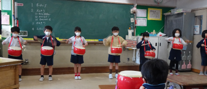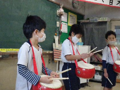わだいこの学習の発表会を行い、リモートで他のクラスの仲間に聞いてもらいました。演奏を聴いた後、それぞれの演奏についての感想を書いた手紙を受け取り、表現したことが、相手に伝わる喜びを感じることができました。聴く人がもっと楽しめるようにするためにはどうすればよいか、考えながらフェスティバルをつくってきました。音楽を通して、仲間との心のつながりを深めている子どもたちです。