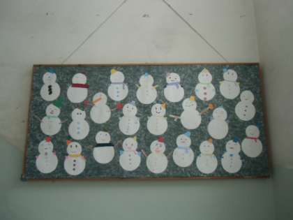 新しい掲示に変わりました。かわいい雪だるまがたくさん飾れていますよ。どんな雪だるまが飾られているかまたじっくりと見てくださいね。