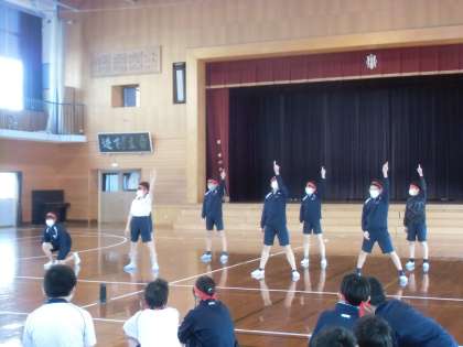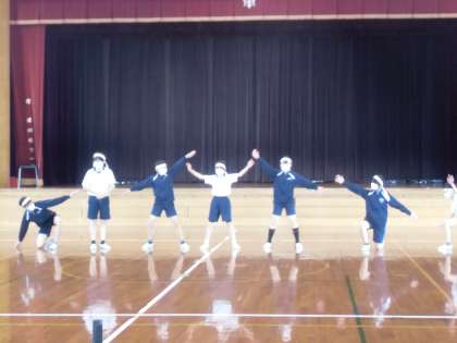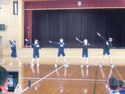 様々な動きを組合せ、曲に合わせて踊りました。オリジナルの動きを考えたり、仲間とタイミングを図って変化を付けたりと、工夫していました。見ている仲間も、それぞれのダンスを楽しんでいました。