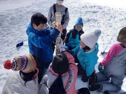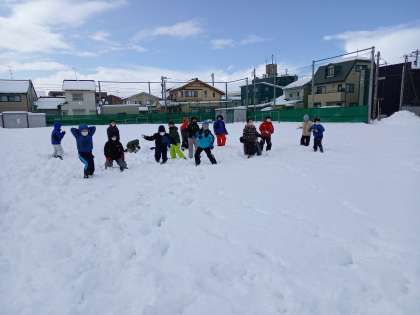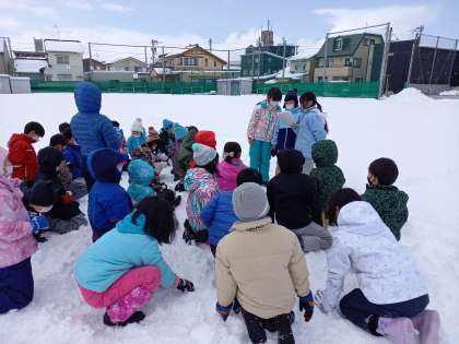 イベント係さんが、雪を使って遊ぶ集会を開きました。