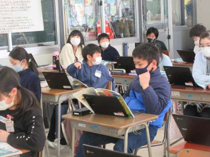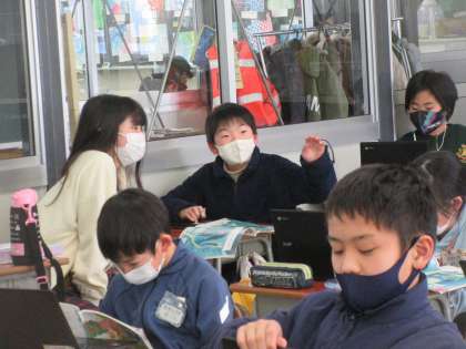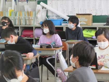 音楽科の時間に「山の魔王の宮殿にて」の曲を鑑賞しました。魔王の宮殿でどのようなことが起きているのかを想像しながら子どもたちは聞いていました。テレビでも聞いたことがあるこの曲に、体を揺らしたり、目を閉じて曲の世界に浸ったりするなど、自分の感じ方を大切にして聞き入っていました。