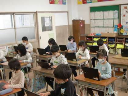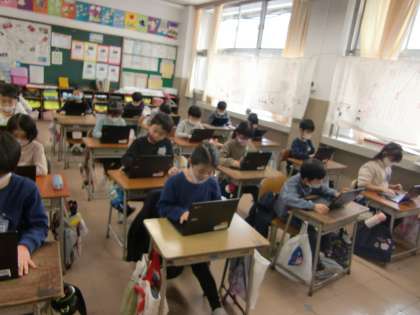 読み聞かせ(2年生) 公開日 2022/02/26 更新日 2022/02/26 2年生 大型絵本「もりのおふろ」の読み聞かせを聞きました。お話の振り返りはクロムブックに書き込みました。「動物がお風呂に入って気持ちよさそう」「みんな、なかよしだなあ」と言葉がどこからか聞こえてきました。残り少ない3学期となりましたが、読み聞かせの時間を設けていきたいと思います。