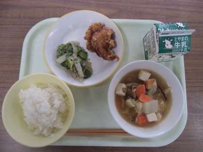今日の給食 公開日 2022/03/14 更新日 2022/03/14 給食室 暖かい日も多くなり、春が近づいていることが感じられます。草木が芽吹くように私たちの体も活動的になる時期です。気温の変化で疲れやすい日もありますので、早めに寝るなど 体調の管理にもきを配りましょう。