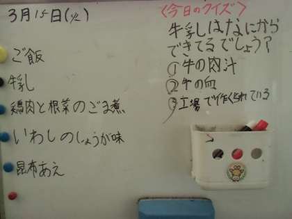 今日の給食 公開日 2022/03/15 更新日 2022/03/15 給食室 栄養価がたかいことでも知られているいわし。体によいあぶら、DHAやEPAが豊富にふくまれています。中性しぼうをへらしたり、脳や神経などのはたらきもよくします。