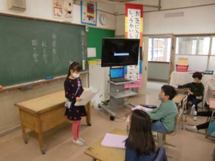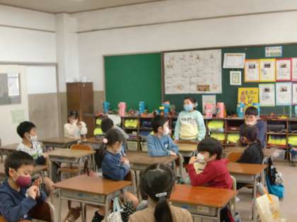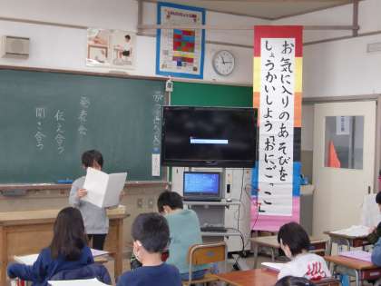 国語科「お気に入りの遊びをしょうかいしよう」の学習では、大切な言葉を考えながら分かりやすい紹介文の書き方を話し合ってきました。今日は、自分が書いたお気に入りの遊びの紹介文の伝え合いをしました。仲間の紹介文を聞くことで、「今度文章を書く時に使うと良い言葉を知ることができました」「仲間の発表を聞くことは勉強になりました」「緊張したけど、伝えることができて嬉しかったです」そんな仲間の思いに対して「緊張しているようには見えませんでした」「いつもと同じ姿で発表していてすごいと思っていました」などと伝えるなど、自分や仲間により良い気持ちを感じながら学習を終了させることができました。