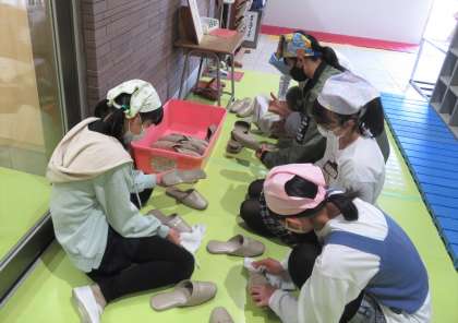 きれいなスリッパを使っていただきたい。トイレを使う時に見てもらいたい。クラス写真を撮る時にお花を楽しんでもらいたい。