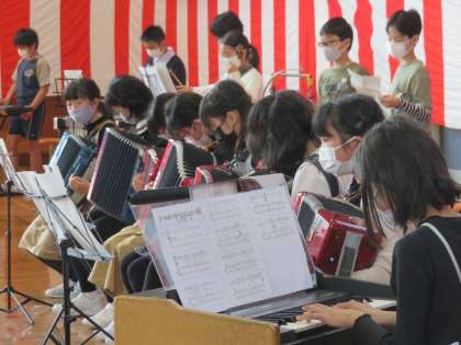 新入生の入退場の合奏を担当した6年生の子どもたち。短い期間に集中して練習し、しっかりとお祝いの気持ちを伝えていました。