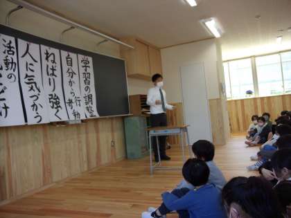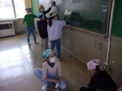4年生の学年開き集会が行われました。集会の中では、学年目標の発表に加え、「活動の見届け」や「ねばり強く」取り組むことなど、高学年に向けて4年生のくらしづくりで大切にしていきたいことについて話がありました。その後の5限目に行った旧校舎のそうじでは、お世話になった校舎をきれいにしようと、ぞうきんを真っ黒にしながら取り組んでいました。最後には清掃用具が落ちていないか、ごみが放置されていないかなど、早速「見届け」を意識して行動する姿がみられました。「みんな生き生き」を目指す4年生、好発進です!
