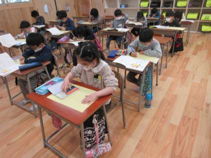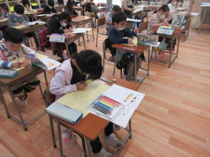 国語科で「たんぽぽ」の詩を視写しました。一文字一文字、丁寧に書き写したり、鉛筆や書く時の姿勢を確かめて書いたりする子どもたちの姿が見られました。