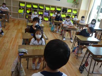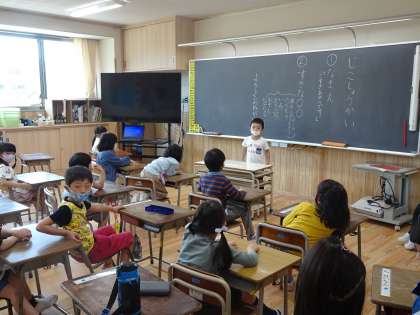 学校生活にも少しずつ慣れ始め、友達のことも気になり始めた1年生の子どもたち。学級ごとに自己紹介を行いました。