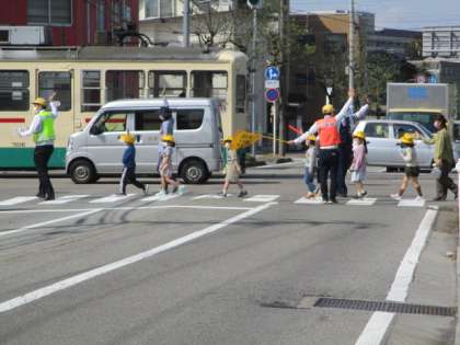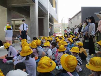 堀川交番の警察官や交通安全協会の方をお招きして、交通安全教室を行いました。