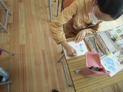 クレヨンをこすったり、色を重ねたり、水彩で様々な技法にチャレンジしたりと、想像を膨らませて楽しんでいました。