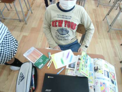 様々な画材を使ってできた模様を使って、心の様子を表現します。