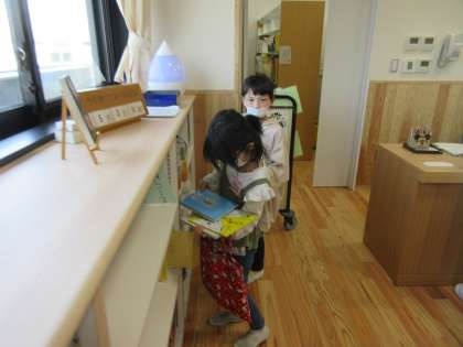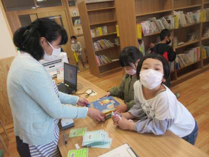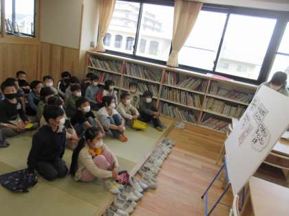 今年度、初めて図書室を利用しました。畳に座って、図書室の利用のきまりを確認し、ブックトークを聞いた後、本を借りました。昨年度は、図書室が教室の近くにあったため、本がもっと大好きになった子どもたちです。今年度は、図書室は2階にありますが、たくさん借りて本に親しみたいと思います。