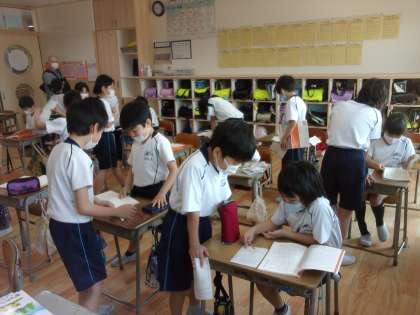 国語科の学習では、漢字の音読みと訓読みについて考えました。子どもたちは漢字には音読みと訓読みがあることや、音、訓の起源について知り、クイズ等を通して漢字の音読みと訓読みの知識を蓄えました。