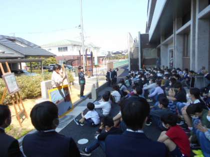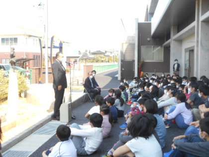 新しく校旗掲揚塔を作ってくださった方への感謝の集いを行いました。これまでの校旗や掲揚塔の歴史を聞いたり、校旗への思いや願いを聞く子どもたちでした。