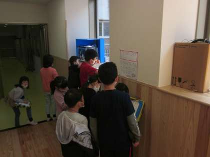 たくさん教えてもらいながら笑顔で校内を巡る子どもたちでした。