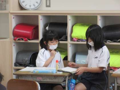 0のかけ算(3年生) 公開日 2022/04/23 更新日 2022/04/23 3年生 算数科の時間に0のかけ算の学習を行いました。じゃんけんゲームを楽しんだ後で、「どうやって得点を計算するのかな」と考えていた子どもたちです。かけ算の意味についても考えていこうとする姿も見られました。