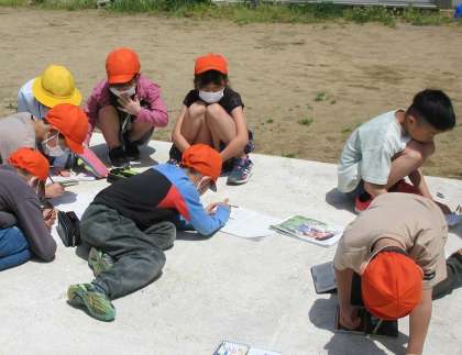 理科の学習では、春の生き物を観察しています。今日は、虫を探して観察しました。アリやダンゴムシ等、どんな虫がいるかなと真剣に探していた子どもたちです。