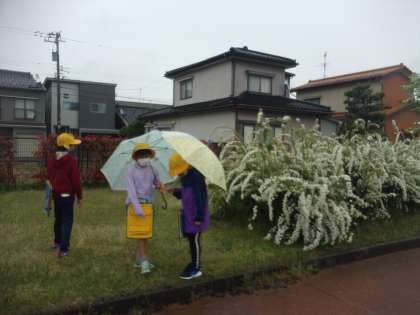 先日、校区探検に行ってきました。前もって、学校のベランダから東西南北の方角に何があるかを眺めていた子どもたちです。今回は通称きしゃぽっぽ公園や東中野公園のある、東と北方面に向かいました。