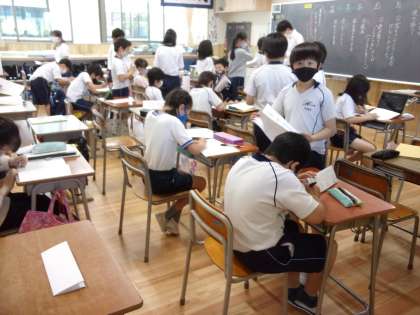 連休を終え、学校に子どもたちの元気な声が戻ってきました。暑い日となりましたが、各クラスでは学習を頑張っていました。国語科の学習では、漢字辞典の使い方を学んだり、「ごんぎつね」の読み語りにむけて練習をしたりしていました。「白いぼうし」の学習で自分の考えを集中してノートに書いている姿も見られました。また土日を挟みますが、来週からのくらしにむけて、目当てをもち過ごしていきましょう。