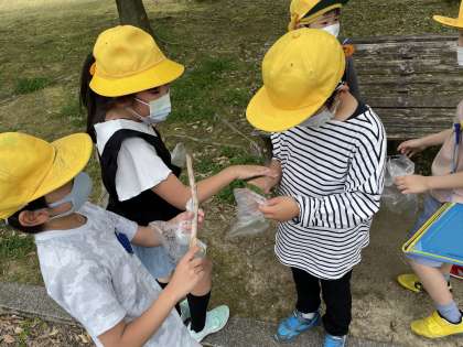 校区探検その2(3年生) 公開日 2022/05/17 更新日 2022/05/17 3年生 先日社会科の学習で二回目の校区探検に行ってきました。 今回は学校から見て南、西の方角を探検してきました。道路の交通量や、外から見た市民病院、太郎丸公園、南富山駅前等の様子も見ることができました。 子どもたちは、道路の看板や、太郎丸公園に四つ葉がたくさん育っていること、南富山駅の前にたくさんのお店があることなど、様々なことを見つけていました。