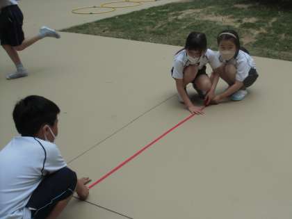 笑顔で楽しい運動の庭(3年生) 公開日 2022/05/17 更新日 2022/05/17 3年生 4組では、「笑顔で楽しい運動の庭」の学習をしています。「運動の庭」でどのような運動や活動をすれば笑顔で楽しくなるのか考えながら活動をしています。野球をしているチームはイベントを開きたいと準備を始めました。また、自分でハードルを作ったり、ドッチボールがしやすいようにテープを貼ったりと工夫をしています。どのような「運動の庭」が出来上がっていくか楽しみですね。