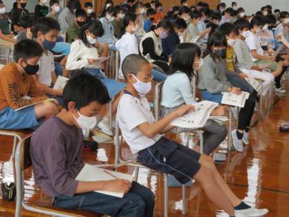 租税教室 公開日 2022/05/17 更新日 2022/05/17 6年生 富山税務署の方をお招きして税に関する学習を行いました。税の仕組みや社会への役立て方等について、身近なくらしと結び付けて学ぶことができました。最後には、105名の6年生の子どもたちの教育にかけられている1年間分の税金(約1億円)の見本を実際に持ち、その重みを体感することで、税金によって自分たちのくらしが支えられていることへの感謝の思いを感じることができました。