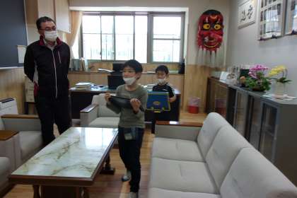 校長室に入った子どもたちは、大きな天狗が飾ってあることにびっくりしていました。