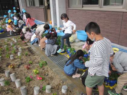 間引きをしたよ(1年生) 公開日 2022/06/09 更新日 2022/06/09 1年生 あさがおがだんだんと大きくなり間引きの学習をしました。 「お部屋が窮屈だから間引きしてあげたいな」 「でも可哀そうだよ。別の所に植えてあげたいな」 「花壇の空いているところに植えてあげようよ」 大事に育てているあさがおをもっともっと大きく育てるために考える姿が見られました。