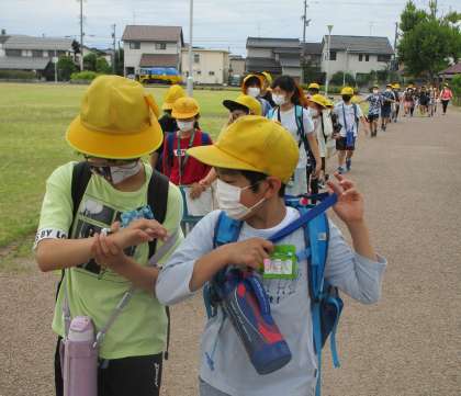 社会見学に行ってきました(5年生・その1) 公開日 2022/06/15 更新日 2022/06/15 5年生 今日は、AグループとBグループに分かれて、四季防災館とイタイイタイ病資料館へ社会見学に行ってきました。学校から東中野公園までファミリーごとに徒歩で向かう様子とバスでの様子です。