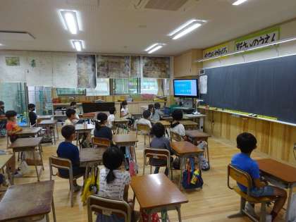校内放送とスライドを活用してプール開き集会を行いまいた。2年生の子どもたちは、プールの約束を真剣に聞いてメモを取ったり、仲間のプール学習の目当て発表を聞いて自分の目当てを見直したりしていました。振り返りでは、昨年度の学習でできるようになったことを確認しながら、更に伸びたいと願い、具体的な目当てを語る子どもたちでした。