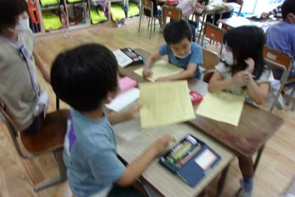 校外学習について(1年生) 公開日 2022/06/16 更新日 2022/06/16 1年生 来週の校外学習について、事前学習を行いました。 ファミリーでどんなことをして遊びたいか、真剣に考えている子どもたちです。