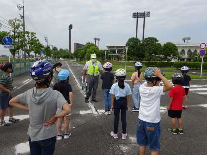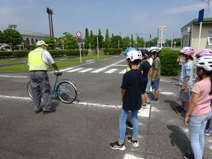 自転車教室がありました。交通博物館にて、正しく安全な自転車の乗り方について教えていただきました。特に気を付けなければならない、右折の仕方についてもしっかりと話を聞き、実践しました。