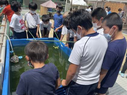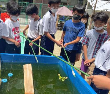 今日の大休憩と昼休みは、5年生の希望者が4年生が飼育の庭で企画してくれたザリガニ釣りに挑戦しました。ザリガニを上手に釣り上げるには技術がいるようで、4年生からのアドバイスに耳を傾けながら楽しく参加することができました。